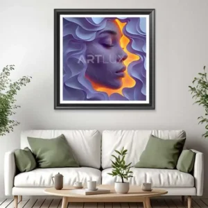 Tableau visage d’une femme est représenté avec une lumière jaune qui en sort