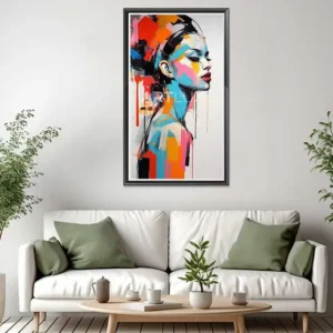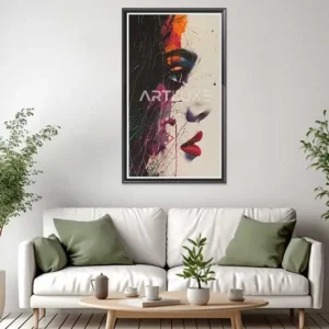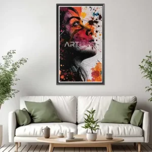 Tableau visage de femme avec des éclaboussures de peinture multicolores
