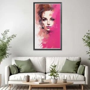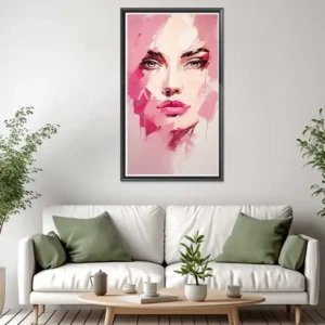 Tableau visage de femme avec un fond rose