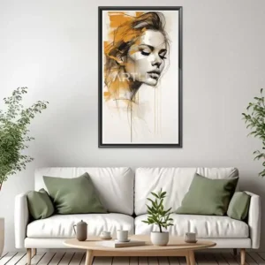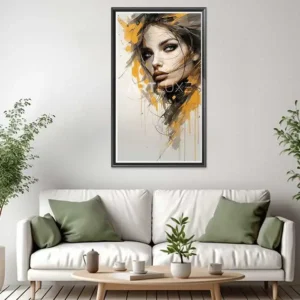 Tableau visage de femme avec des éclaboussures de peinture jaune