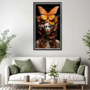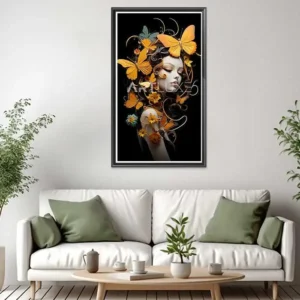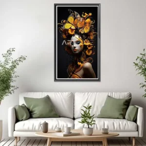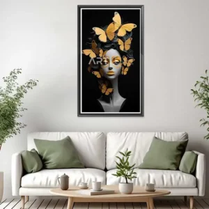Tableau femme avec des papillons sur la tête, une sculpture art déco