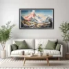 Découvrez notre Tableau chaîne de montagnes avec des arbres au premier plan. Une pièce artistique exceptionnelle pour embellir votre intérieur.