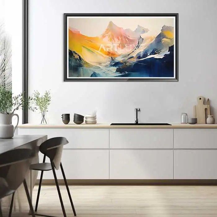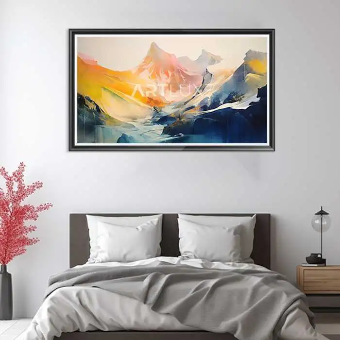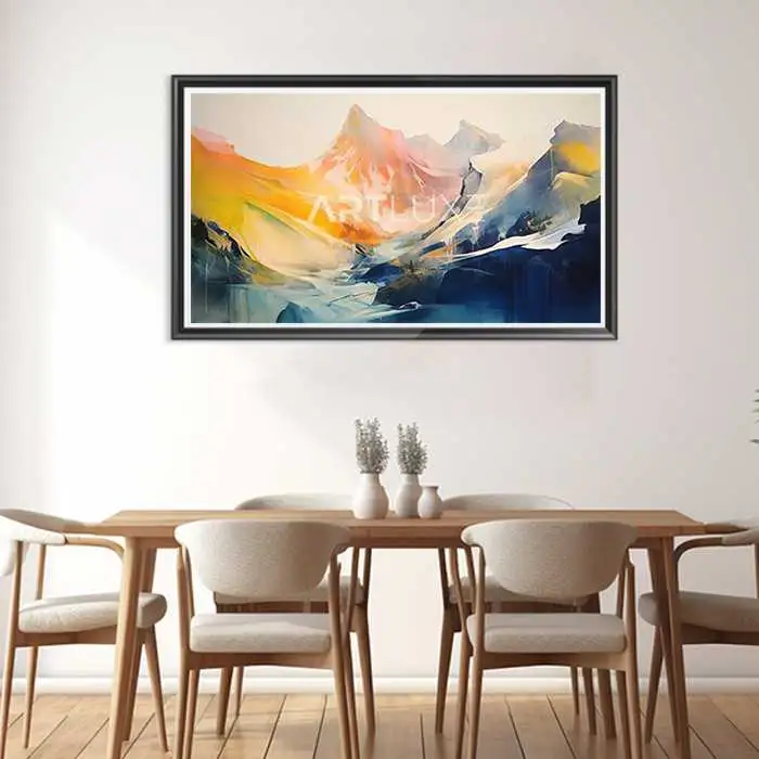 Découvrez notre Tableau chaîne de montagnes avec un fond de ciel. Un travail artistique remarquable pour personnaliser votre espace de vie.