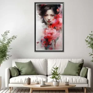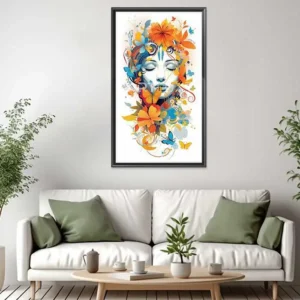 Découvrez notre Tableau femme aux cheveux bleus et des fleurs dans les cheveux. Une création exclusive pour ajouter une touche d’élégance à votre décoration intérieure.