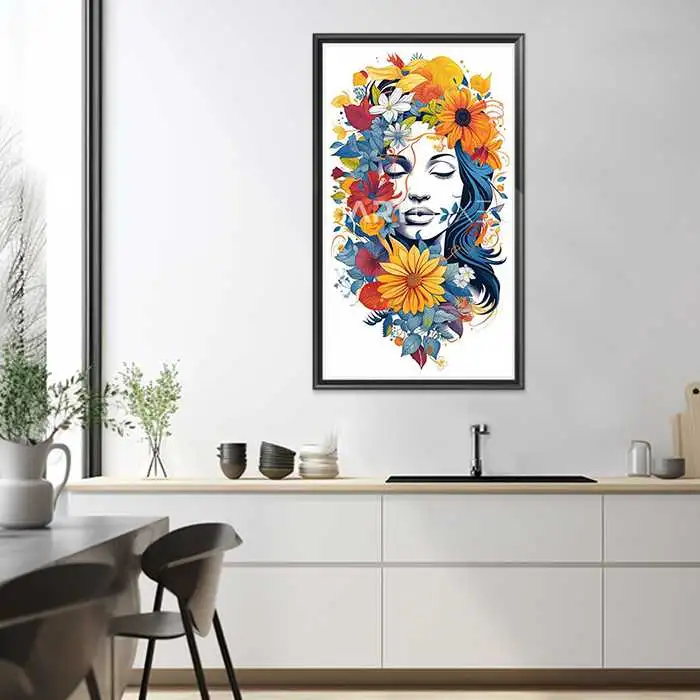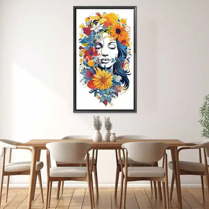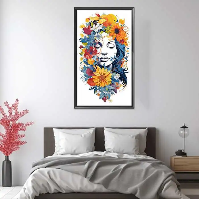 Découvrez notre Tableau femme avec des fleurs dans les cheveux. Un chef-d’œuvre original pour créer une ambiance accueillante dans votre maison.