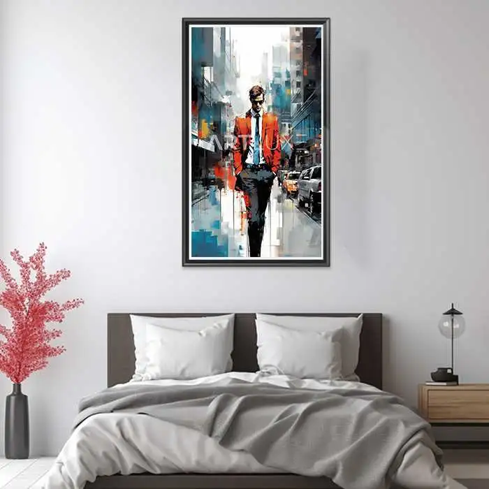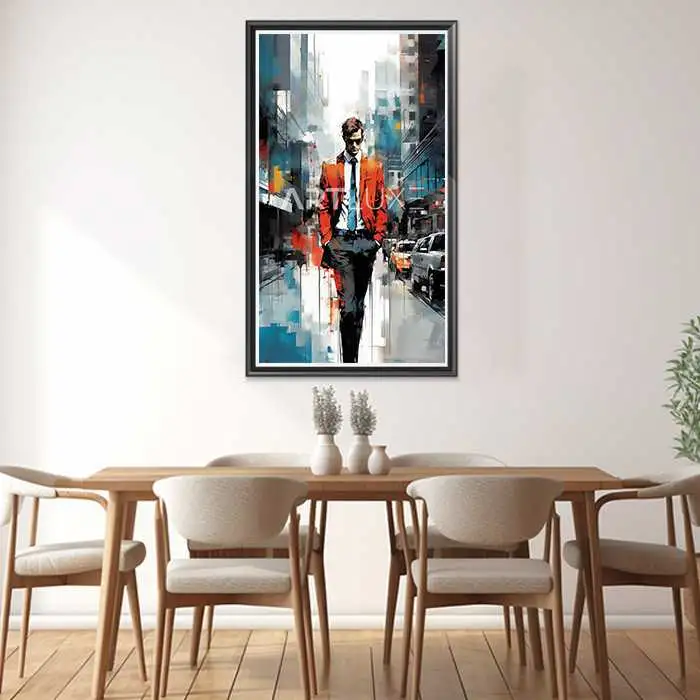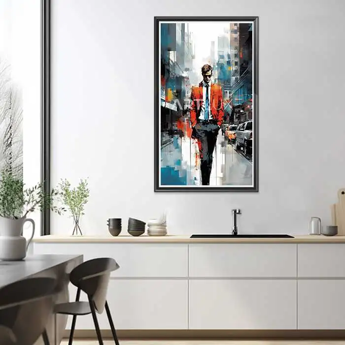 Découvrez notre Tableau Homme marchant rue art détaillé. Un travail artistique remarquable pour compléter harmonieusement votre espace de vie.