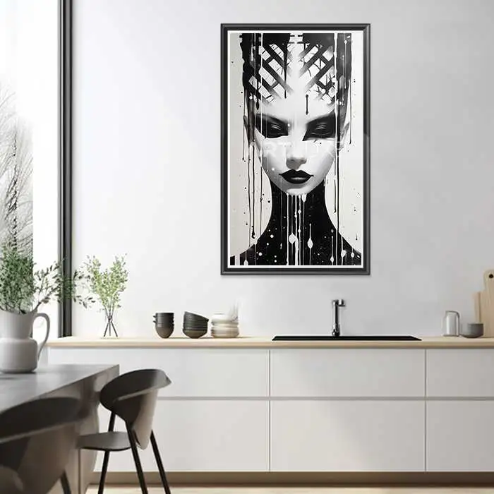 Découvrez notre Tableau visage de femme avec de la peinture dégoulinante. Une œuvre distinctive pour élever le style de votre maison.