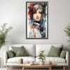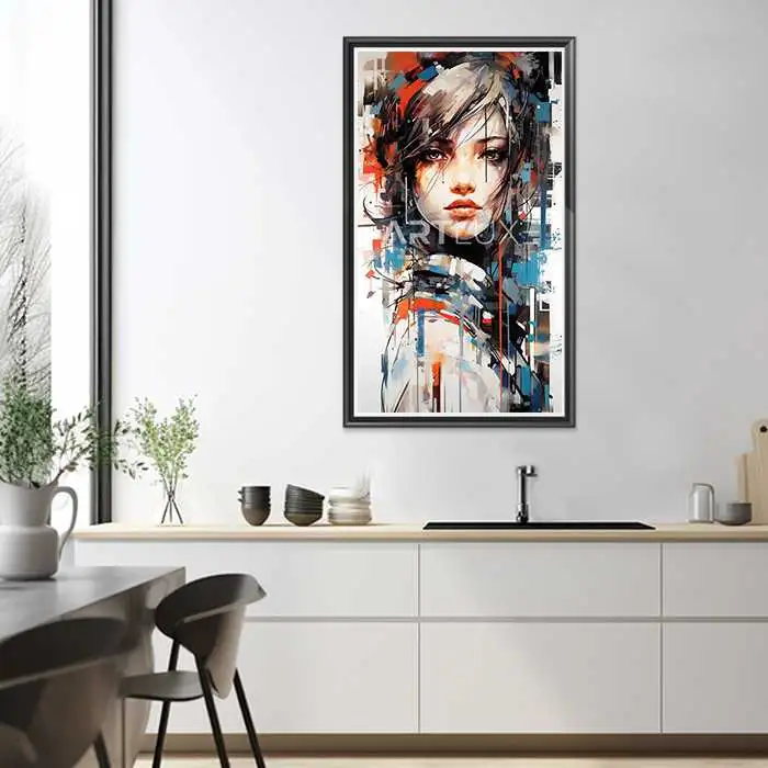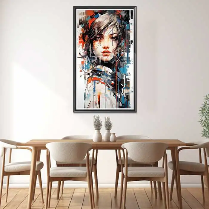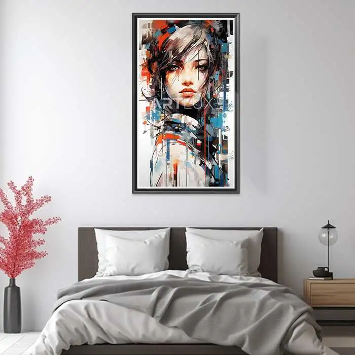 Découvrez notre Tableau visage de femme avec un fond rouge et bleu. Une création exceptionnelle pour ajouter une touche de caractère à votre décoration intérieure.