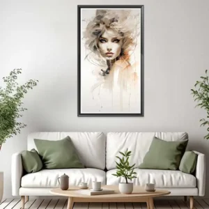 Tableau visage de femme avec des éclaboussures de peinture orange et noire